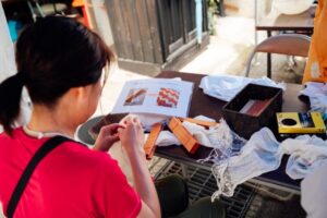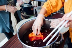 液に漬ける時間で色の濃淡が変わるそうで、「もう少し濃いめにしたいな」と試行錯誤するのも楽しい時間でした。