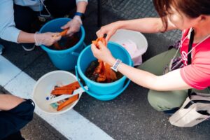 さて、いよいよ「りんご染め」体験のはじまりです。